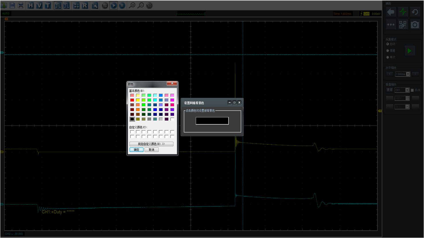 主界面背景颜色可根据用户喜好自由设置。波形亮度和网格亮度也可自由设置。